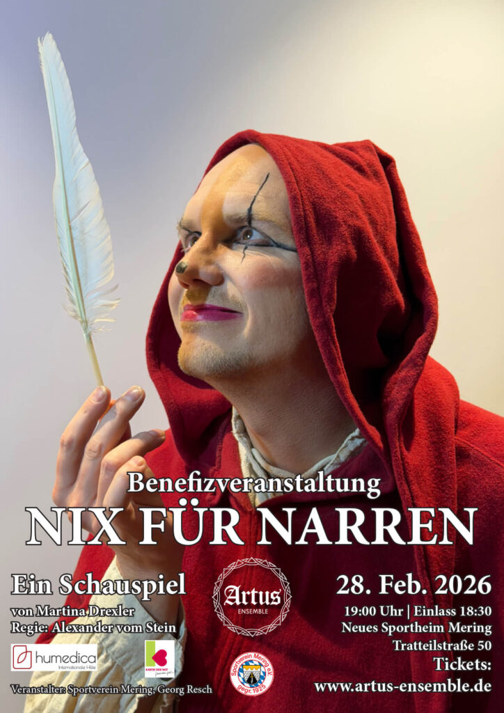 Heimatgeschichte lebendig erzählen, ist das Bühnenkonzept des 2010 gegründeten Artus Ensembles (AE), ein gemeinnütziger Theaterverein mit Sitz in Mering. Engagierte SchauspielerInnen und Regisseurinnen setzen ausgewählte Stoffe mit viel Spielfreude in Szene. Ziel des Artus Ensembles ist es, mehr Bewusstsein für Geschichte und Geschichten aus der Region auf die Bühne zu bringen. Psychologische Finesse, Dramatik und starke Figuren prägen die hintersinnigen, teilweise grotesken Schauspiele. Historie erlebbar machen, ist ein Angebot für Auseinandersetzung, Identifikation und Dialog. Das Artus Ensemble lädt dazu herzlich ein.